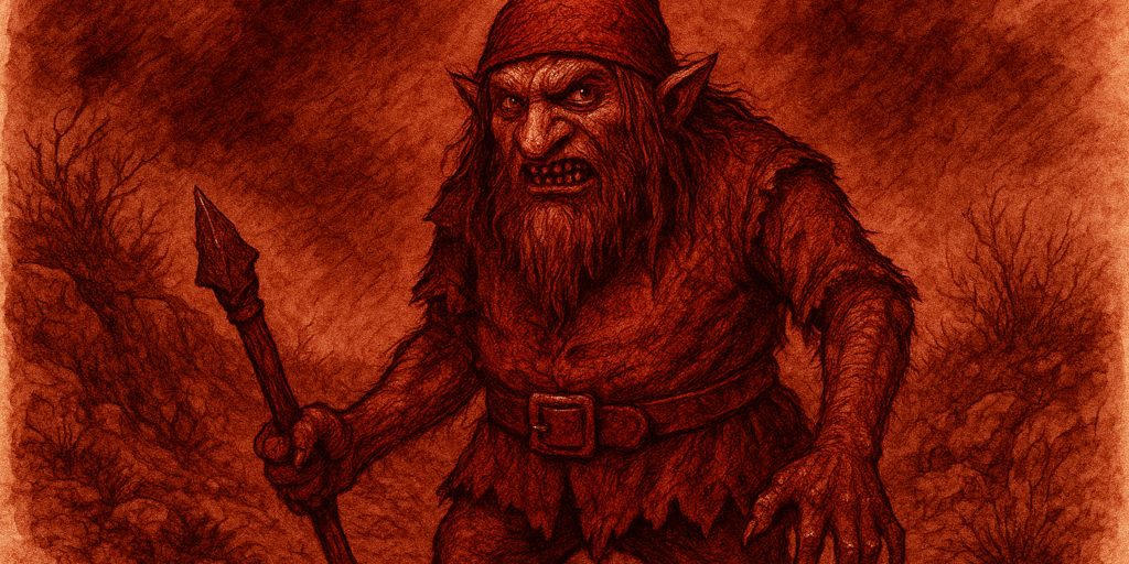 In the crumbling ruins of the Anglo-Scottish borderlands lived the Redcap, a goblin who dyed his hat in human blood. He was fond of ambushing travellers, especially those foolish enough to wander into abandoned castles.