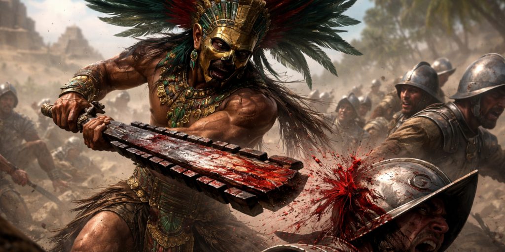 The macuahuitl terrified Spanish conquistadors because it was unfamiliar, efficient, and wielded by warriors who knew precisely how to use it. It was not a crude substitute for steel. It was a weapon designed for its own martial world, and in that world it was deadly.